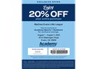 Simply use this coupon via your smartphone to receive the 20% discount. Be sure that the cashier scans the barcode on the coupon, as this is how Academy will be tracking redemptions from our organization. Coupon is valid during event dates/times only.